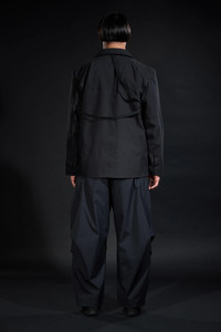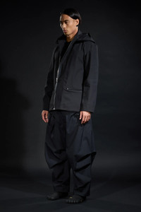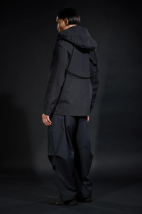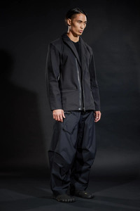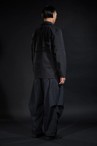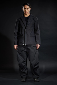 Acronym pioneered the technical blazer (GT-J11, FW-0607). J124-BQ is the latest waypoint on this development vector -a technical over-blazer in waterproof, windproof, breathable, 3L technical cotton. Cut to work stand alone as well as to layer over other items. Peaked lapel and convertible revers adapts between formality and protection. Double breasted 2-stage CF opening features size 8 metal zip for full storm protection, and/or thumb underloop snap closure for speed and ease. 5 pockets in 3 sizes (small: concealed zip forearm pockets, medium: TensionZipǽ front pockets, large: concealed zip centre-back game pocket) for load distribution and organisation. Funnel type storm hood with fold back visor attaches for parka type silhouette and protection. Hidden gusseted cuffs aperture closed to seal up, and aperture open to roll up. JacketSlingǽ for portability. AuxZipǽ for multi-season modularity. An unorthodox combination of set-in, gusset, and kimono sleeve for silhouette and (very unblazer-like) superior range of motion. Like all Acronym fabrics, this 3L technical cotton is notably stiff when new, and breaks in with use to maximise longevity and individual patination. [ Shown in size: M. Fits: WIDE ] Fabric technology 3L TECHNICAL COTTON _( Face Fabric: 68% Cotton, 32% Polyester, Membrane: Polyolefin based, Backer: 100% Polyamide ( Recycled )) _Waterproof, windproof, breathable _PFC and solvent free technology _Taped seams 3L TECHNISCHE BAUMWOLLE _(Oberstoff: 68% Cotton, 32% Polyester, Membran: Polyolefin basiert, Innenfutter: 100% Polyamid ( Recycled ) ) _Wasserdicht, winddicht, atmungsaktiv _PFC und Losungsmittelfreie Technologie _Verschweißte Nahte Sizing Size XS S M L XL 1/2 Chest 53 56 59 62 65 Length 72 75 78 81 84 Shoulders 16 16.5 17 17.5 18 Sleeves 62 64 66 68 70 All measurements are in centimeters. Weight: 985 g (size M, including removable parts) Subsystems JacketSlingǽ TensionZipǽ AuxZipǽ ( F ) Pockets: 5 _External: 5 _Internal: 0 Includes JacketSlingǽ [ Removable ] Storm Hood [ Removable ] Interface with All ACRONYM AuxZipǽ ( M ) units Actual product may differ from images. Price including VAT and excluding shipping costs.