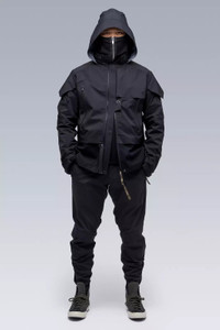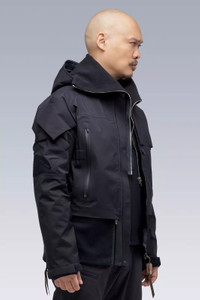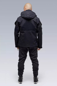 Description Re-fitted and re-engineered version of the FW-0809 item, J16-GT is the ACRONYM response to the original PCU Level 5 jacket. Improved ergonomics and signature X-back patterning. ACRONYM SOUNDǽ for audio electronics. Gore-Tex® Pro Shell construction, Gore-Tex® 2L dimensional flex panels and lower pockets, storm flap retainer button, hem expansion zip, removable Storm Hood, EscapeZipǽ, and external JacketSlingǽ mounts. Built with enhanced Gore-Tex® Pro most breathable technology** to provide extreme breathability—minimizing moisture buildup to give more comfort in more conditions—with retained ruggedness, uncompromised waterproof and windproof protection, and superior lightweight qualities with an improved environmental footprint. [ **Optimized for breathability during higher-intensity activities, while retaining the ruggedness and waterproof ratings for which Gore-Tex® Pro is known. This technology newly introduces the lightest laminates ever offered in the Gore-Tex® Pro category, using 30-denier face textiles and the new solution-dyed version of the robust Micro Grid™ backer. ] [ Shown in size: M. Fits: STRAIGHT ] Fabric Technology 3L GORE-TEX® PRO [ Most breathable technology ] (70% PA, 30% ePTFE) With solution-dyed Micro Grid™ backer for improved environmental footprint GUARANTEED TO KEEP YOU DRY™ Sizing XS S M L XL 1/2 Chest 52 55 58 61 64 Length 65 68 71 74 77 Shoulders 12 13.5 14 14.5 15 Sleeves 64 66 68 70 72 All measurements in centimeters. Weight: 660 g (size M, color: Black, including removable parts) Systems ACRONYM SOUNDǽ (PAT.) Subsystems ForceLockǽ JacketSlingǽ EscapeZipǽ SpeedLockǽ AuxZipǽ ( F ) Pockets: 8 _External: 8 _Internal: 0 Includes ForceLockǽ [ Removable ] JacketSlingǽ [ Removable ] Storm Hood [ Removable ] Logo tape [ Removable ] Interface with All ACRONYM AuxZipǽ ( M ) units