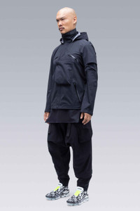 3L Gore-Tex® Pro Interops Jacket Description Generation two point two. J1A was the first ever jacket designed by Acronym. Originally conceived in the years between 1999 and 2001, it is the progenitor of the Type 2371*, and of every other Acronym jacket that has followed. This is iteration fifteen. J1A-GT is the culmination of everything we have learned about building apparel since that time. Everything is new. Everything is the same. The very idea of ǍCROŇYMř rendered in physical, wearable form. A carefully balanced array of functional and aesthetic systems presented here in completely remastered form. Asymmetric. Dynamic. ǍCROŇYMř among equals. Combine with 3A-1 or 3A-3TS for full INTEROPSǽ functionality. Built with next generation Gore-Tex® Pro fabric technology for improved ruggedness, increased breathability**, and greater comfort in more conditions. Shown in size: M (Erlsn, 183 cm), XS (Delia, 175 cm), L (Ian, 190 cm) [ Fits: STRAIGHT ] Modifications from Gen 2.0 include: new multi-position convertible storm collar, storm hood with redesigned visor/circumference adjustment, repositioned and resized GravityPocketsǽ, elongated liner access zip, addition of manubrium height center front snap closure, reintroduction of sleeve hitch tabs. *Together with 3A-1, the Type 2371 jacket was released in 2002 as one of the main components of ACR KIT-1. KIT-1 was the first commercially available Acronym product. Fabric Technology 3L GORE-TEX® PRO [Next generation technology] (70% PA, 30% ePTFE) With MICROGRID® Backer Guaranteed To Keep You Dry® **Up to 28% more breathability compared to previous generation Gore-Tex® Pro products. Garments engineered with Gore-Tex® Pro product technology are built for maximized ruggedness and are ideal for extreme and extended use. Sizing XS S M L XL 1/2 Chest 54 57 60 63 66 Length 65 68 71 74 77 Shoulders 13 13,5 14 14,5 15 Sleeves 65 67 69 71 73 All measurements in centimeters. Weight: 745 g (size M, including removable parts) Systems ǍCROŇYMř INTEROPSǽ (PAT.) ǍCROŇYMř SOUNDǽ (PAT.) Subsystems ForceLockǽ JacketSlingǽ EscapeZipǽ SpeedLockǽ Gravity Pocketǽ AuxZipǽ ( F ) Pockets: 9 _External: 9 _Internal: 0 Includes ForceLockǽ [ Removable ] JacketSlingǽ [ Removable ] Storm Hood [ Removable ] Logo tape [ Removable ] Interface with All ǍCROŇYMř INTEROPSǽ bags All ǍCROŇYMř AuxZipǽ ( M ) units