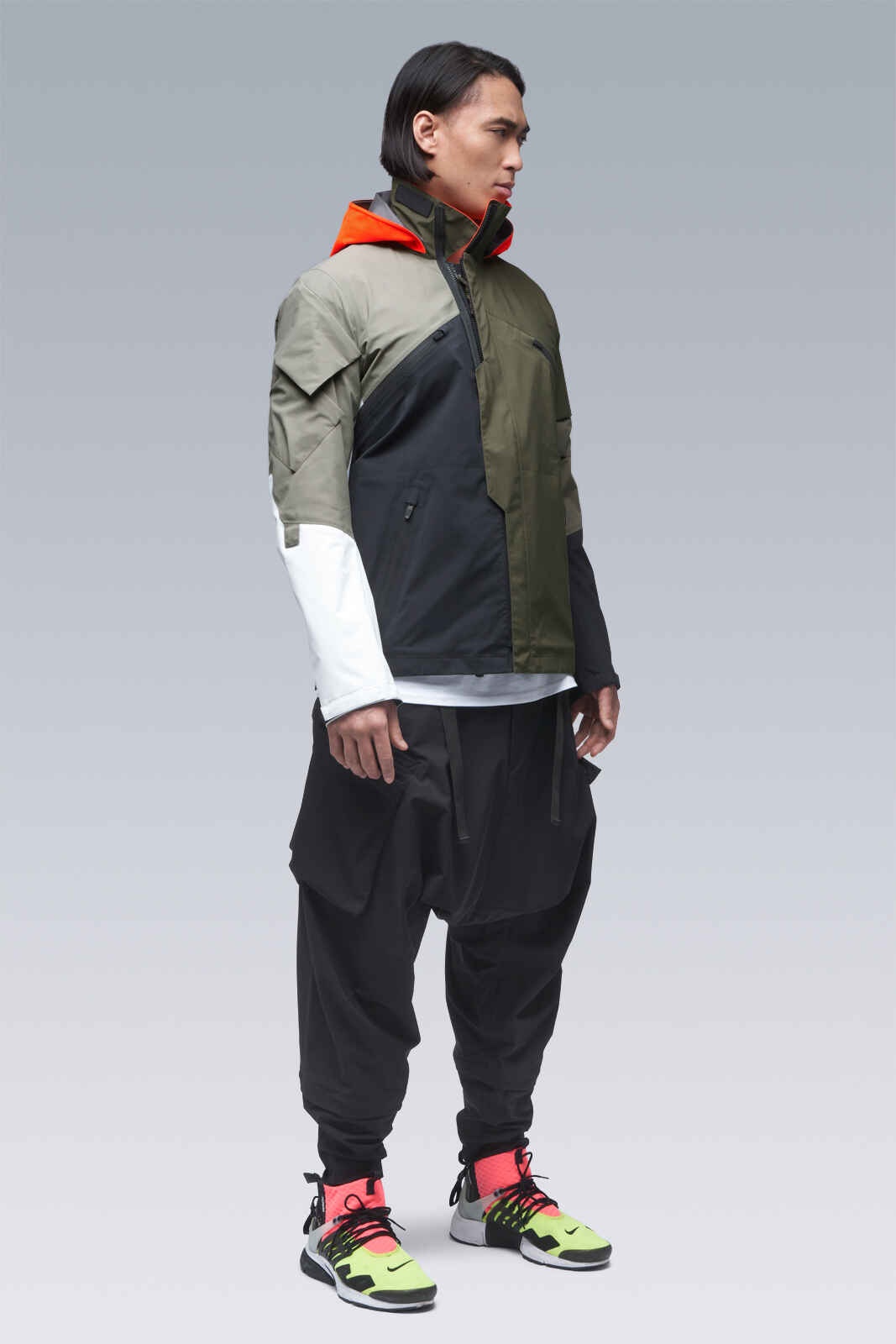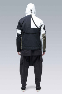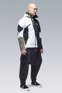 3L Gore-Tex Pro Interops Jacket Description Kinetically remastered. All new original. J1B is built with nodal point weathered drone assassin math. 9 anatomic pockets allow for digital cardboard realism and sub-orbital saturation points. Interopsæ for frictionless free-market fetishism drugs. Asymmetric DIY 3rd Arm Legba refrigerator. Removable beef noodles franchise vinyl. ǍCROŇYMř systems order-flow remains unparalleled. Built with enhanced Gore-Tex® Pro most breathable technology** to provide extreme breathability—minimizing moisture buildup to give more comfort in more conditions—with retained ruggedness, uncompromised waterproof and windproof protection, and superior lightweight qualities with an improved environmental footprint. J1B will include 2 Storm Hoods for absolute optionality. The additional hood is constructed with 2.5L GORE-TEX® product technology, delivering a supple feel and reduced audio signature. Multi Black: 3L White & 2.5L Black Storm Hoods, Shiny WR Zip Closures Multi RAF Green: 3L RAF Green & 2.5L Hi-Vis Orange Storm Hoods, Matte WR Zip Closures [ **Optimized for breathability during higher-intensity activities, while retaining the ruggedness and waterproof ratings for which Gore-Tex® Pro is known. This technology newly introduces the lightest laminates ever offered in the Gore-Tex® Pro category, using 30-denier face textiles and the new solution-dyed version of the robust Micro Grid™ backer. ] [ Shown in size: M. Fits: STRAIGHT ] Fabric Technology 3L GORE-TEX® PRO [Most breathable technology] (72% PA, 28% ePTFE) With solution-dyed Micro Grid™ backer for improved environmental footprint GUARANTEED TO KEEP YOU DRY™ Sizing XS S M L XL 1/2 Chest 54 57 60 63 66 Length 65 68 71 74 77 Shoulders 13 13,5 14 14,5 15 Sleeves 65 67 69 71 73 All measurements in centimeters. Weight: 754 g (size M, color: Multi Black, including removable parts) Systems ǍCROŇYMř INTEROPSǽ (PAT.) ǍCROŇYMř SOUNDǽ (PAT.) Subsystems ForceLockǽ JacketSlingǽ EscapeZipǽ SpeedLockǽ Gravity Pocketǽ AuxZipǽ ( F ) Pockets: 9 _External: 9 _Internal: 0 Includes ForceLockǽ [ Removable ] JacketSlingǽ [ Removable ] Storm Hoods [ 2 ] [ Removable ] Logo tape [ Removable ] Interface with All ǍCROŇYMř INTEROPSǽ bags All ǍCROŇYMř AuxZipǽ ( M ) units