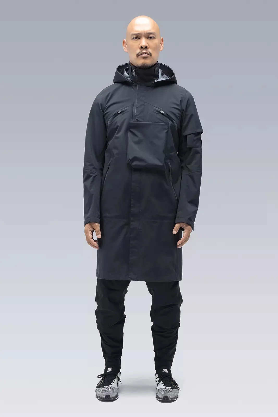 J1L-GT is the definitive Acronym trench coat. Based on the J1A*, it is the very idea of ACRONYM rendered in physical, wearable form. A carefully balanced array of functional and aesthetic systems presented here in completely remastered form. Asymmetric. Dynamic. ACRONYM among equals. Combine with 3A-1, 3A-2, 3A-3TS, or 3A-13TS for full INTEROPSǽ functionality. Built with next generation Gore-Tex® Pro fabric technology for improved ruggedness, increased breathability**, and greater comfort in more conditions. [ Shown in size: M. Fits: STRAIGHT ] New J1L features include: 3/4 length body, Interopsǽ expansion gusset, interior zip pocket. J1A Gen 2.2 features include: multi-position convertible storm collar, storm hood with redesigned visor/circumference adjustment, repositioned and resized GravityPocketsǽ, elongated liner access zip, addition of manubrium height center front snap closure, reintroduction of sleeve hitch tabs. *J1A was the first ever jacket designed by Acronym. Originally conceived in the years between 1999 and 2001, it is the progenitor of the Type 2371**, and of every other Acronym jacket that has followed. **Together with 3A-1, the Type 2371 jacket was released in 2002 as one of the main components of ACR KIT-1. KIT-1 was the first commercially available Acronym product. Fabric technology 3L GORE-TEX® PRO [Next generation technology] (70% PA, 30% ePTFE) With MICROGRID® Backer Guaranteed To Keep You Dry® **Up to 28% more breathability compared to previous generation Gore-Tex® Pro products. Garments engineered with Gore-Tex® Pro product technology are built for maximized ruggedness and are ideal for extreme and extended use. Sizing Size XS S M L XL 1/2 Chest 55 58 61 64 67 Length 95 98 101 104 107 Shoulders 14.5 15 15.5 16 16.5 Sleeves 67 69 71 73 75 All measurements in centimeters. Weight: 847g (size M) Systems ACRONYM INTEROPSǽ (PAT.) ACRONYM SOUNDǽ (PAT.) Subsystems ForceLockǽ JacketSlingǽ EscapeZipǽ Gravity Pocketǽ AuxZipǽ ( F ) Pockets: 10 _External: 9 _Internal: 1 Includes ForceLockǽ [ Removable ] JacketSlingǽ [ Removable ] Storm Hood [ Removable ] Logo tape [ Removable ] Interface with All ACRONYM INTEROPSǽ bags All ACRONYM AuxZipǽ ( M ) units Actual product may differ from images.