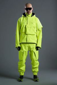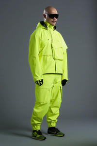 J1W returns in a high-visibility yellow 2.5L GORE-TEX® construction. New J1W-GTV specific features include: TORAY ULTRASUEDEř double sleeve and inner collar, paracord and web-tape anchor loops, minimal JacketSlingǽ, high-vis yellow WR zippers and trims, and reflective high-vis yellow logo tape and ForceLockǽ. As the name suggests, J1W is the wide-body iteration of the ACRONYM J1A. It has been re-patterned to cover and conceal the widest range of bodies, layers, and load bearing configurations to date. Standard non-standard J1A features include a newly engineered TensionZipǽ Flak pocket and zipless reloadable GravityPocketsǽ (smoother, faster, lighter). J1A was the first ever jacket designed by Acronym. Originally conceived in the years between 1999 and 2001, it is the progenitor of the Type 2371*, and of every other Acronym jacket that has followed. J1W-GTV is the culmination of everything we have learned about building apparel since that time. Everything is new. Everything is the same. The very idea of ACRONYM rendered in physical, wearable form. A carefully balanced array of functional and aesthetic systems presented here in completely remastered form. Asymmetric. Dynamic. ACRONYM among equals. Combine with 3A-1 or 3A-3TS for full INTEROPSǽ functionality. 2.5L GORE-TEX® product technology delivers a supple feel and reduced audio signature. DISCLAIMER: Due to the industrial nature of this fabric as well as its high-visibility hue some stains may prove impossible to remove with cleaning. 'Strike through' of the membrane color to the outer surface of the fabric will also occur when the fabric is scored with hard objects. This is an intrinsic characteristic of the fabric and cannot be considered as defective. *Together with 3A-1, the Type 2371 jacket was released in 2002 as one of the main components of ACR KIT-1. KIT-1 was the first commercially available Acronym product. [ Shown in size: M. Fits: WIDE ] Fabric technology 2.5L GORE-TEX® _(Face fabric: 100% Polyester, Membrane: expanded Polytetrafluoroethylene) _With Polymer Dot Backer TORAY ULTRASUEDEř double sleeve & inner collar _(65% Polyester, 35% Polyurethane) 2.5L GORE-TEX® _(Oberstoff: 100% Polyester, Membrane: expandiertes Polytetrafluorethylen) _Abseite mit Polymer-punkten TORAY ULTRASUEDEř Doppelarmel & Innenkragen _(65% Polyester, 35% Polyurethan) Sizing Size XS S M L XL 1/2 Chest 61 64 67 70 73 Length 63 66 69 72 75 Shoulders 15 15.5 16 16.5 17 Sleeves 68 70 72 74 77 All measurements in centimeters. Weight: 843g (size M, including removable parts) Systems ACRONYM INTEROPSǽ (PAT.) ACRONYM SOUNDǽ (PAT.) Subsystems ForceLockǽ JacketSlingǽ EscapeZipǽ SpeedLockǽ Gravity Pocketǽ AuxZipǽ ( F ) TensionZipǽ Pockets: 10 _External: 9 [ Mezzanine: 1 ] _Internal: 1 Includes ForceLockǽ [ Removable ] JacketSlingǽ [ Removable ] Logo tape [ Removable ] Storm Hood Interface with All ACRONYM INTEROPSǽ bags All ACRONYM AuxZipǽ ( M ) units Actual product may differ from images. Price including VAT and excluding shipping costs.