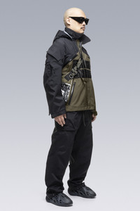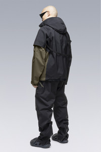 The very idea of ACRONYM rendered in physical, wearable form. A carefully balanced array of functional and aesthetic systems presented here in completely remastered form, and, for the first time, with TEC SYS webbing. Asymmetric. Dynamic. Modular. ACRONYM among equals. Combine with 3A-1, 3A-2, or 3A-3TS for full INTEROPSǽ functionality. Built with enhanced Gore-Tex® Pro most breathable technology** to provide extreme breathability—minimizing moisture buildup to give more comfort in more conditions—with retained ruggedness, uncompromised waterproof and windproof protection, and superior lightweight qualities with an improved environmental footprint. [ **Optimized for breathability during higher-intensity activities, while retaining the ruggedness and waterproof ratings for which Gore-Tex® Pro is known. This technology newly introduces the lightest laminates ever offered in the Gore-Tex® Pro category, using 30-denier face textiles and the new solution-dyed version of the robust Micro Grid™ backer. ] [ Shown in size: M. Fits: WIDE ] Fabric technology 3L GORE-TEX® PRO [Most breathable technology] (72% PA, 28% ePTFE) With solution-dyed Micro Grid™ backer for improved environmental footprint GUARANTEED TO KEEP YOU DRY™ Sizing Size XS S M L XL 1/2 Chest 62,5 65,5 68,5 71,5 74,5 Length 70 72 74 76 78 Shoulders 15 15,5 16 16,5 17 Sleeves 65,5 67,5 69,5 71,5 73,5 All measurements in centimeters. Weight: 880g (size M, color: Black, including removable parts) Systems ACRONYM INTEROPSǽ (PAT.) ACRONYM SOUNDǽ (PAT.) ACRONYM TEC SYS TEC SYS GRID: Rows: 4 Channels: 10 Subsystems ForceLockǽ JacketSlingǽ EscapeZipǽ SpeedLockǽ Gravity Pocketǽ AuxZipǽ ( F ) Pockets: 9 _External: 9 _Internal: 0 Includes ForceLockǽ [ Removable ] JacketSlingǽ [ Removable ] Storm Hood [ Removable ] Logo tape [ Removable ] Interface with All ACRONYM INTEROPSǽ bags All ACRONYM 3RD ARM Modular [ M ] pockets All ACRONYM AuxZipǽ ( M ) units Actual product may differ from images.