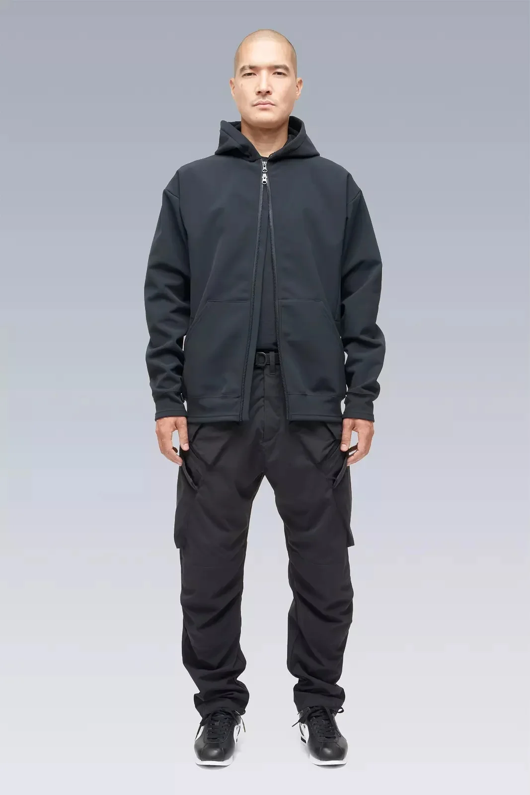 The ultimate hooded sweatshirt. The J2-SS is a garment that can be worn in almost all conditions and all situations. Inside or outside, fair weather or foul; the J2 will maintain your sense of comfort and well being with forcefield like certainty. Soft enough to work as a cozy modular liner. Shell enough to withstand the elements all on it's own. Looks good even after you sleep in it on the floor the whole night. [ Shown in size: M. Fits: LOOSE. ] Fabric technology SCHOELLER® WB-400™ ECONYL® Softshell (44% PES (RECYCLED), 35% PA (REGENERATED), 15% PU, 6% EL) Made in Switzerland Sizing Size XS S M L XL 1/2 Chest 54 57 60 63 66 Length 67 70 73 76 79 Shoulders 19.5 20 20.5 21 21.5 Sleeves 58 60 62 64 66 All measurements in centimeters. Weight: 762g (size M, including removable parts) Subsystems JacketSlingǽ SpeedLockǽ AuxZipǽ ( M ) Pockets: 4 _External: 2 _Internal: 2 Includes JacketSlingǽ [ Removable ] Interface with All ACRONYM AuxZipǽ ( F ) units Actual product may differ from images.