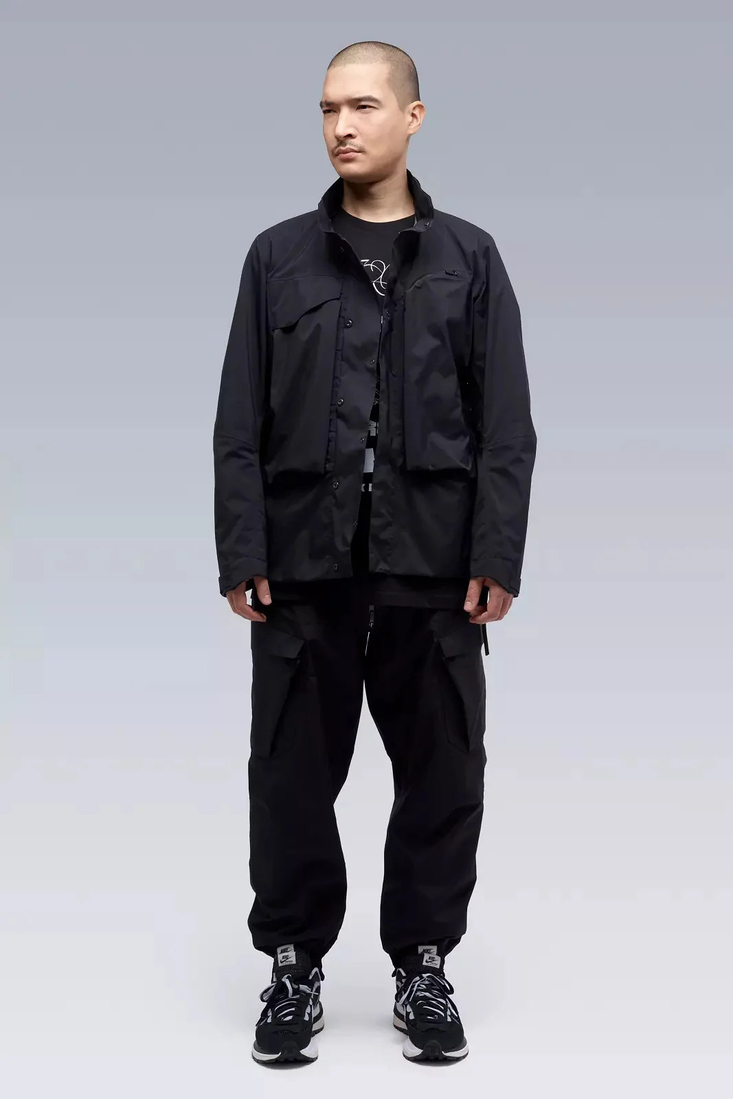 Description The second generation J56 is the Acronym rendition of the classic field jacket taken to its evolutionary ends. Asymmetric. Mechanical. Organic. One of our most sophisticated apparel interfaces ever. All new TensionZipǽ pocket arrays feature a myriad of functional site specific variations. Unique zipless waterproof windproof front closure is a fully contemporaneous nod to tradition. Learnable flow features like the JacketSlingǽ, drop and Gravity Pocketsǽ exemplify Acronym garment engineering. The user variable J56 feature set will illustrate the difference between what we do and what everyone else does over the years it's in your employ. Built with enhanced Gore-Tex® Pro most breathable technology** to provide extreme breathability—minimizing moisture buildup to give more comfort in more conditions—with retained ruggedness, uncompromised waterproof and windproof protection, and superior lightweight qualities with an improved environmental footprint. [ **Optimized for breathability during higher-intensity activities, while retaining the ruggedness and waterproof ratings for which Gore-Tex® Pro is known. This technology newly introduces the lightest laminates ever offered in the Gore-Tex® Pro category, using 30-denier face textiles and the new solution-dyed version of the robust Micro Grid™ backer. ] [ Shown in size: M. Fits: Straight ] Fabric Technology 3L GORE-TEX® PRO [Most breathable technology] (72% PA, 28% ePTFE) With solution-dyed Micro Grid™ backer for improved environmental footprint GUARANTEED TO KEEP YOU DRY™ Sizing S M L XL 1/2 Chest 59 62 65 68 Length 71 74 77 80 Shoulders 12,5 13 13.5 14 Sleeves 63 65 67 69 All measurments in centimeters. Weight: 716 g (size M, color Black, including removable parts) Systems ACRONYM® INTEROPSǽ (PAT.) ACRONYM® SOUNDǽ (PAT.) Subsystems ForceLockǽ JacketSlingǽ SpeedLockǽ Gravity Pocketǽ AuxZipǽ ( F ) TensionZipǽ Pockets: 10 _External: 8 _Internal: 2 Includes ForceLockǽ [ Removable ] JacketSlingǽ [ Removable ] Storm Hood [ Removable ] Logo tape [ Removable ] Interface with All ACRONYM INTEROPSǽ bags All ACRONYM AuxZipǽ ( M ) units