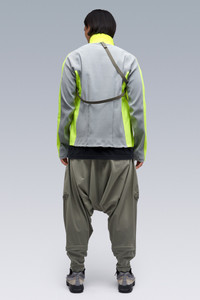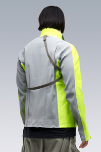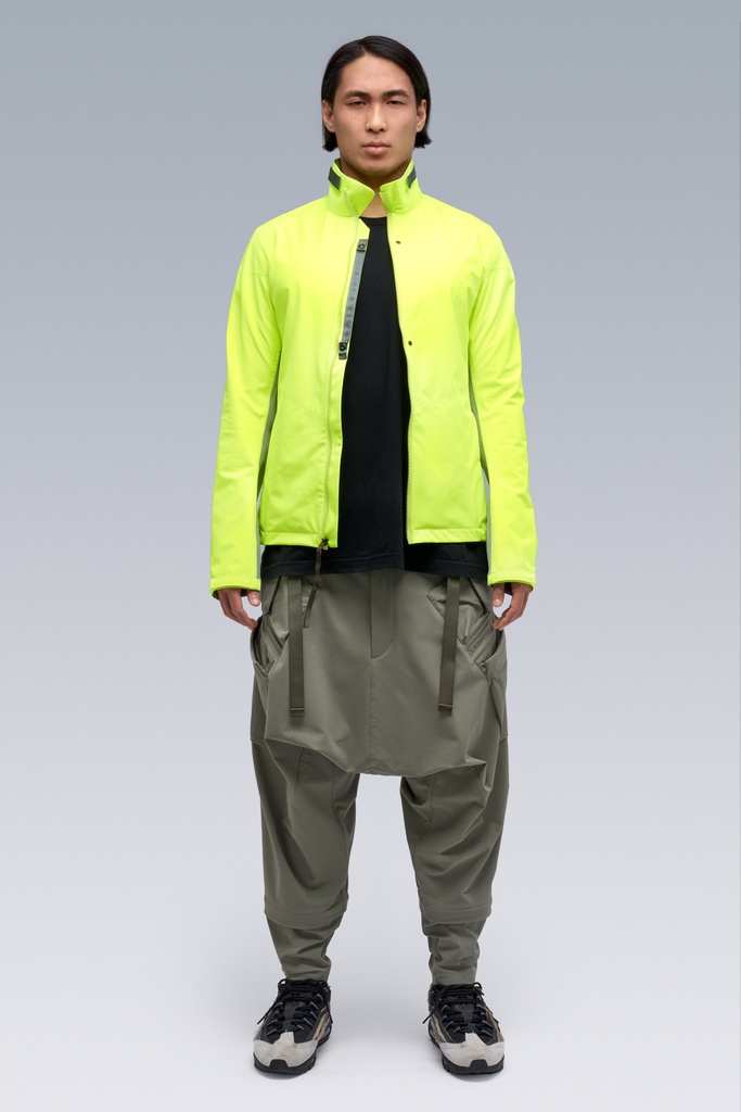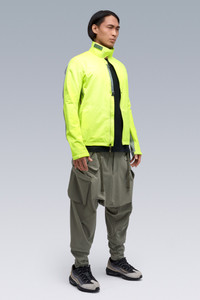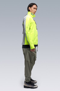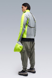 ' Heterosis is the increased strength of different characteristics or other superior qualities arising from the crossbreeding of genetically different organisms. Commonly known as outbreeding enhancement or . ' J69-HY is an entirely different animal. Close cut for speed to begin with, its fully articulated fit has now been spliced from collar to cuffs with Gore-Tex® 2L stretch laminate. This is one hundred and eighty degrees of dimensional flex. And it moves, and feels, even better than that sounds. Must be experienced to be understood. Genetic tampering aside, this second skin also boasts an array of singular features: latest iteration convertible collar, fully taped seams, detached entry pockets, 2-stage EscapeZipǽ CF closure, ForceLockǽ, JacketSlingǽ, and an all new dockable and adjustable Storm Hat. [ Shown in size: M (Lenny, Ümit) and L (Ian). Fits: PROFILE ] Fabric technology 2.5L GORE-TEX (Face fabric: 100% PES, Membrane: ePTFE) With Polymer Dot Backer 2L GORE-TEX STRETCH LAMINATE PANELS (34% PES, 29% PA, 22% ePTFE, 15% EL) Sizing Size S M L XL 1/2 Chest 52 55 58 61 Length 63 66 69 72 Shoulders 13.5 14 14.5 15 Sleeves 65 67 69 72 All measurments in centimeters. Weight: 495g (size M, color Black, including removable parts) Systems ACRONYM SOUNDǽ (PAT.) Subsystems ForceLockǽ EscapeZipǽ JacketSlingǽ Pockets: 2 _External: 2 _Internal: 0 Includes ForceLockǽ [ Removable ] JacketSlingǽ [ Removable ] Logo tape [ Removable ] Storm Hat [ Removable ]