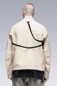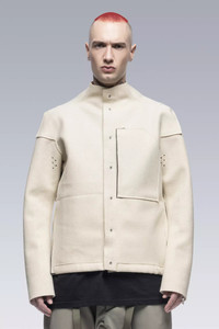 The idea behind J70-BU was to create a garment of the future from the traditions of the past. The inherent performance aspects of wool are brought to the fore in this sustainably made fabric from the Burel Factory in Portugal. After months of prototyping and testing we are happy to classify this as a softshell garment, operating as it does in the zone between inner and outerwear. Durable and architectural, breathable and naturally water repellent, it performs in an extremely wide range of temperatures and conditions. Stylistically the jacket moves as far away from tradition as possible, with articulated patterning, reversed seam allowances, sculptural lines, and minimalist technical details. The current state of the art in technical sustainable apparel from Acronym and Burel. [ Shown in size: M. Fits: STRAIGHT ] Fabric technology BUREL WOOL _(100% WO) _Naturally wind proof, water repellent, and insulative _Recyclable and biodegradable _Fabric made in Portugal Sizing Size XS S M L XL 1/2 Chest 61 64 67 70 73 Length 55.5 58.5 61.5 64.5 67.5 Shoulders 11.6 12.1 12.6 13.1 13.6 Sleeves 69 71 73 75 77 All measurements in centimeters. Weight: 1430g (size M, color: Black, including removable parts) Subsystems JacketSlingǽ Pockets: 3 _External: 3 _Internal: 0 Actual product may differ from images.