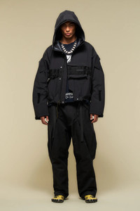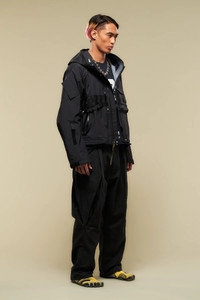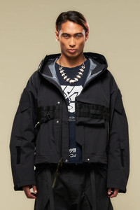 The J79TS re-upped and re-silhouetted. Wider and more anatomic, its new sculptural shape fits over a broader spectrum of body types and layers. The flak pocket has been updated to a low profile TensionZipǽ closure. The hem is a rapid adjust split-drawcord design, slanted back to front. Increased body width means increased TEC SYS channels (17), running, J79 signature style, directly over the flak pocket. Extra long sleeve hitch tabs allow customisation of sleeve coverage. Spike tape, AuxZipǽ, and overlap zip funnel hood complete the package. [ Shown in size: M. Fits: WIDE ] Fabric technology 3L GORE-TEX® PRODUCTS WITH PERFORMANCE TECHNOLOGY _(Face fabric: 100% Polyamide [Recycled], Membrane: expanded Polyethylene/Polyurethane, Backer: 100% Polyamide [Recycled]) _Solution dyed _GUARANTEED TO KEEP YOU DRY™ 3L GORE-TEX® PRODUKTE MIT PERFORMANCE TECHNOLOGIE _(Oberstoff: 100% Polyamid [Recycled], Membran: expandiertes Polyethylen/Polyurethan, Innenfutter: 100% Polyamid [Recycled]) _Spinngefarbt _GUARANTEED TO KEEP YOU DRY™ Sizing Size XS S M L XL 1/2 Chest 65 68 71 74 77 Length 58 61 64 67 70 Shoulders 22 22.5 23 23.5 24 Sleeves 60 62 64 66 68 All measurements in centimeters. Weight: 711g (size M, color Black) Systems ACRONYM SOUNDǽ (PAT.) ACRONYM TEC SYS TEC SYS GRID: Rows: 2 Channels: 17 Subsystems ForceLockǽ JacketSlingǽ SpeedLockǽ AuxZipǽ ( F ) TensionZipǽ Pockets: 7 _External: 6 [ Mezzanine: 1 ] _Internal: 1 Includes ForceLockǽ [ Removable ] JacketSlingǽ [ Removable ] Logo tape [ Removable ] Spike tape [ Removable ] Interface with All ACRONYM 3RD ARM Modular [ M ] pockets All ACRONYM AuxZipǽ ( M ) units Actual product may differ from images. Price including VAT and excluding shipping costs.