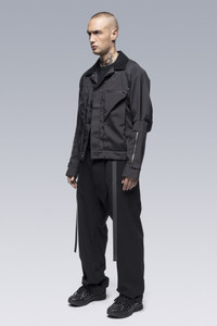 Synthesising approaches from different eras and cultures, J86 reconstructs an American workwear staple with pattern making techniques originally conceived for sword fighting in Medieval Europe. The jacket features bilateral detached entry side pockets, TensionZipǽ chest pockets, pleated forearm pockets, and vertical interior pockets. A Coolmax® lined collar provides all-season comfort and moisture control. Archetype specific details and trims (post buttons, adjustable waistband, etc.) paired with Acronym specific fit and fitments complete this fully articulated garment. Available for the first time in a consumer grade product, this composite nylon is one of the all time best lightshell fabrics we have ever employed. Similar in characteristics to a 3 layer wwb fabric, its sandwich construction has another function entirely; namely uniting the contrasting functions of exterior resilience and interior comfort. The result is clothing that is unrivalled in both next to skin compatibility, and environment facing resistance. If price is no object, then this is currently the best all-season all-condition fabric money can buy. [ Shown in size: M. Fits: Profile ] Fabric technology COMPOSITE NYLON _Face Fabric (99% PA, 1% antistatic yarn) _Backer (65% PES, 35% CO) _Fabric made in Germany Lining _(65% PES, 35% CO) Sizing Size S M L XL 1/2 Chest 55 58 61 64 Length 58 61 64 67 Sleeves 82.5 85 87.5 90 All measurments in centimeters. Weight: 716 g (size M, including removable parts) Subsystems JacketSlingǽ TensionZipǽ Pockets: 8 _External: 6 _Internal: 2 Includes JacketSlingǽ [ Removable ] Actual product may differ from images.