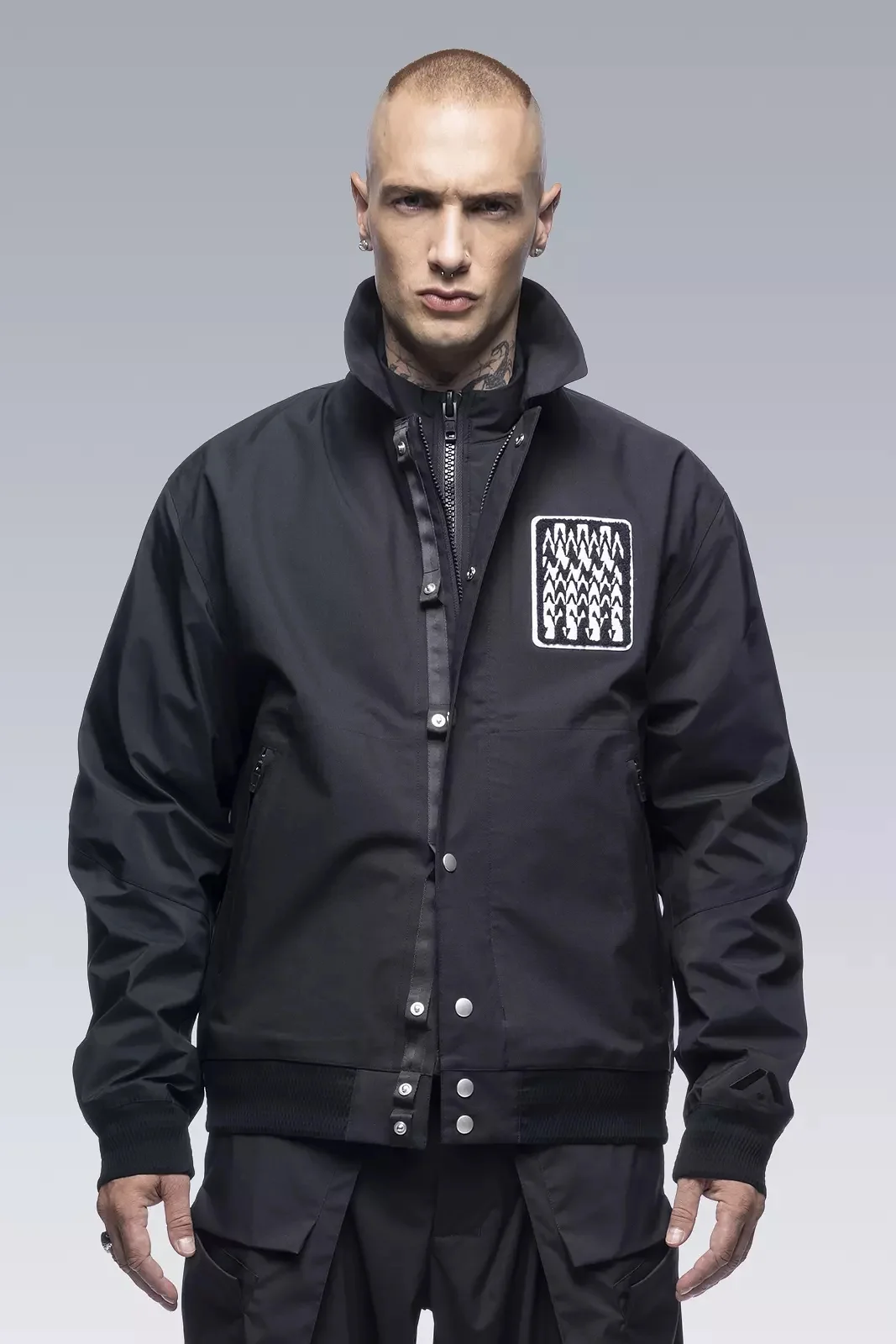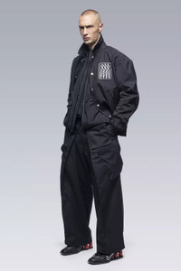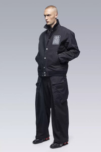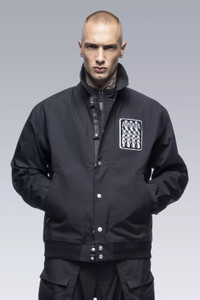 No school as school. No team as team. J94 is only the second time Acronym has interpreted the varsity jacket and this time the visual cues are all that remain. On a technical level, this is on another level. 3-layer composite body and sleeve fabrics means the jacket weighs in at just over 500 grams. Fully taped construction means wind and water invulnerability and true all season use. Dimensional flex laminate hem and cuffs mean the slickest possible care-free closures are also breathable and waterproof. 2 stage centre front closure means one hand and snap for convenience, or 2 hands and zip for a complete weather seal. Jacketsling means you can stop thinking about it when you stop wearing it. Chenille 'Wildcard' graphic on left chest (no letter as letter) and 'delta-Ǎ' embroidery on cuff. Pair with FC3-GT for complete wet weather protection. [ Shown in size: M. Fits: STRAIGHT ] Fabric technology 3L Technical Wool (Body) (41% PES, 36% CLY, 23% WO) 3L Nylon (Sleeves) (70% PA, 30% ePTFE) Sizing Size XS S M L XL 1/2 Chest 56 59 62 65 68 Length 65 68 71 74 77 Shoulders 17 17.5 18 18.5 19 Sleeves 65 67 69 71 73 All measurments in centimeters. Weight: 520g (size M, color: Black, including removable parts) Systems ACRONYM SOUNDǽ (PAT.) Subsystems JacketSlingǽ AuxZipǽ ( F ) Pockets: 2 _External: 2 _Internal: 0 Includes ForceLockǽ [ Removable ] JacketSlingǽ [ Removable ] Logo tape [ Removable ] Interface with All ACRONYM AuxZipǽ ( M ) units Actual product may differ from images.