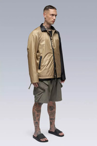 The perfect coach jacket. The J95-WS takes all the simplicity, attitude, and versatility of this ubiquitous staple, and injects it with the motion optimised and utility expanding DNA of ACRONYM. The 2-stage centre-front features EscapeZipǽ for swift entry and exit, as well as web tape mounted press buttons for one handed operation. An ingenious additional zipper converts the collar for full neck protection. The perfectly placed external pockets have bi-lateral pocket bags for maximum storage, while the internal security pockets are set in holster position allowing stable carry despite the jacket's lightweight construction and feel. The Speedlockǽ shockcord hem allows for rapid silhouette changes and air compartmentalization. Built in 2L GORE-TEX INFINIUM™ with WINDSTOPPER® technology and lined with 4-way stretch mesh, J95's luster and drape are a direct result of it's material sophistication. [ Shown in size: M. Fits: STRAIGHT ] Fabric technology 2L GORE-TEX INFINIUM™ WINDSTOPPER® (43% PA, 57% ePTFE) Mesh Body Lining (86% Recycled PA, 14% EL) Lining Sleeves (100% PA) Sizing Size XS S M L XL 1/2 Chest 55 58 61 64 67 Length 66 69 72 75 78 Shoulders 23 23.5 24 24.5 25 Sleeves 54 56 58 60 62 All measurments in centimeters. Weight: 440g (size M, color: Black, including removable parts) Systems ACRONYM SOUNDǽ (PAT.) Subsystems ForceLockǽ JacketSlingǽ EscapeZipǽ SpeedLockǽ AuxZipǽ ( F ) Pockets: 4 _External: 2 _Internal: 2 Includes ForceLockǽ [ Removable ] JacketSlingǽ [ Removable ] Logo tape [ Removable ] Interface with All ACRONYM AuxZipǽ ( M ) units Actual product may differ from images.