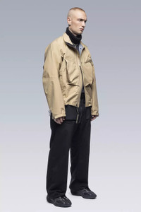 Shorter. Wider. Techer. Optioner. A non-restrictive dolman sleeve pattern is the key to the J96's new look and feel. Compact, yet light and effortless, the 96 feels fast and loose in the way that only a cropped jacket can. But this blunter shape doesn't mean sacrifices in performance or options. The jacket can be anchored down by the articulated SpeedLockǽ hem, and armours up against inclemencies both physical and psychological via either Storm Hat or Storm Hood. Both head gear options are included with the jacket, and store the twin TensionZipǽ chest pockets designed specifically to hold them (hood on the left, hat on the right). Mezzanine pockets behind these are the prefect place to park idle hands, and the cavernous lower bi-lateral pockets will swallow almost anything else you should want to carry. EscapeZipǽ and Jacketslingǽ mean you can doff the whole package and be handsfree and back at it in seconds. [ Shown in size: L (new photos) and M (original photos). Fits: STRAIGHT ] Fabric technology 3L GORE-TEX® PRO (64% PA, 36% ePTFE) With solution-dyed Micro Grid™ backer for improved environmental footprint GUARANTEED TO KEEP YOU DRY™ Sizing Size XS S M L XL 1/2 Chest 59 62 65 68 71 Length 64 67 70 73 76 Shoulders 23 23.5 24 24.5 25 Sleeves 56 58 60 62 64 All measurments in centimeters. Weight: 610g (size M, color: Black, including removable parts) Systems ACRONYM SOUNDǽ (PAT.) Subsystems ForceLockǽ JacketSlingǽ EscapeZipǽ SpeedLockǽ AuxZipǽ ( F ) Pockets: 6 _External: 6 _Internal: 0 Includes ForceLockǽ [ Removable ] JacketSlingǽ [ Removable ] Storm Hood [ Removable ] Logo tape [ Removable ] Storm Hat Interface with All ACRONYM AuxZipǽ ( M ) units Actual product may differ from images.