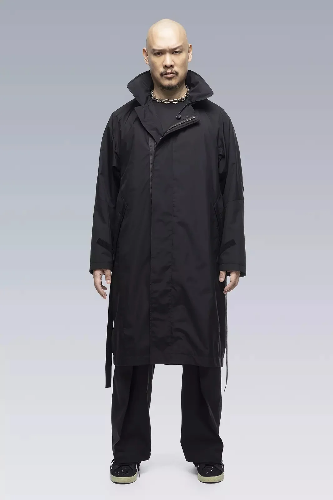 The over-overcoat. Supple. Technical. Dynamic. Built from 2-layer Gore-Tex Infinium™ Windstopper®, J99's sophisticated multi-panel ergonomic shape will envelop almost any outfit, and it's seemingly endless list of features and details will meet almost any demand. Of particular note are the multi-stage and multi-position center front storm flaps and collar, the fully taped stowable storm hood, the internal SpeedLockǽ waist gaiter for air compartmentalisation, and an all new integrated JacketSlingǽ that disappears inside the waist of the coat when not in use. [ Shown in size: M. Fits: WIDE. ] Fabric technology 2L GORE-TEX INFINIUM™ WINDSTOPPER® shell fabric (78% PES, 22% ePTFE) bluesign® certified and with PFC free DWR Lining fabric (100% PES) Hood in 2 Layer PA/ePTFE fabric [ Taped ] Sizing Size S M L XL 1/2 Chest 66 69 72 75 Length 108 111 114 117 Shoulders 15.5 16 16.5 17 Sleeves 64 66 68 70 All measurements in centimeters. Weight: 962g (size M, including removable parts) Systems ACRONYM SOUNDǽ (PAT.) Subsystems ForceLockǽ JacketSlingǽ SpeedLockǽ AuxZipǽ (F) Pockets: 6 _External: 4 _Internal: 2 Includes ForceLockǽ [ Removable ] JacketSlingǽ [ Removable ] Logo tape [ Removable ] Belt [ Removable ] Interface with All ACRONYM AuxZipǽ ( M ) units Actual product may differ from images.