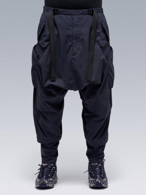 Encapsulated Nylon Articulated Pant Description The new uniform. Combining the freedom of movement of the ǍCRŇMř edge to edge fit block with the utility of a raid-type BDU cargo trouser; P30A is a convertible, ultrawide, zero-resistance utility pant. Featuring a distributed storage array of 14 pockets, articulated knees, an updated integrated beltless fully-adjustable waistband, and a removable 1/4 bottom hem. The most comfortable cargo pant we have ever made. Dual mode conversion makes P30A adaptable to 4-season use. Use 3/4 mode to vent in warmer conditions, and full length mode to compartmentalise air when things cool down. Beltless waistband cinches down from oversize and locks in securely. XS = +28. S = +30. M = +32. L = +34. XL = +36 [ Shown in size: M. Fits: ULTRAWIDE ] Fabric Technology ENCAPSULATED NYLON (99% PA, 1% EL) Water repellent, windproof, breathable Made in USA Military specification Sizing XS S M L XL 1/2 Waist 51 53 55 57 59 1/2 Hem 21 21.5 22 22.5 23 Inseam 49.5 52 54.5 57 59.5 Outseam 74 77 80 83 86 All measurements in centimeters. Weight: 635 g (size M, color Black) Subsystems Deep Pocketsǽ Pockets: 14 _External: 10 _Internal: 4
