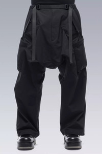 P30AL-DS is a silhouette variant of ACRONYM’s most celebrated wide-spectrum pant. While the fit mechanics remain, the visual stance of the pant has been tweaked; trading the layered 3/4 leg for one with a generous, full-length, adjustable drawcord hem. Combining the freedom of movement of the ǍCRŇMř edge to edge fit block with the utility of a raid-type BDU cargo trouser; P30A is a convertible, ultrawide, zero-resistance utility pant. Featuring a distributed storage array of 14 pockets, articulated knees, an updated integrated fully-adjustable QLQRǽ waistband, and a one-handed QLQRǽ waistband release tab. The most comfortable cargo pant we have ever made. QLQRǽ waistband cinches down from oversize and locks in securely. XS = +28. S = +30. M = +32. L = +34. XL = +36 P30A-DS is made in heavyweight schoeller® 3XDRY® Dryskin™; abrasion resistant, water repellent, 4-way stretch, moisture managing, and fast drying. Optimal for all season use. [ Shown in size: M. Fits: ULTRAWIDE ] Fabric technology schoeller® 3XDRY® DRYSKIN™ (205 g/m²) _(91% PA, 9% EL) _Made in Switzerland Sizing Size XS S M L XL 1/2 Waist 48.5 50.5 52.5 54.5 56.5 1/2 Hem 27.4 27.9 28.4 28.9 29.4 Inseam 69.8 71.8 73.8 75.8 77.8 Outseam 93.5 96.5 99.5 102.5 105.5 All measurements in centimeters. Weight: 788g (size M, color Black) Subsystems Deep Pocketsǽ QLQRǽ Web Waistband _25 MM mil-spec webbing _Release Tab [ Removable ] Pockets: 14 _External: 10 _Internal: 4 Includes Release Tab [ Removable ] Actual product may differ from images.