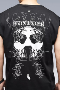 EGO SHOOTER. Oversize fit mercerized cotton interlock sleeveless t-shirt with front and back prints. [ Shown in size: M. Fits: LOOSE ] Fabric technology 100% Cotton (165 g/m²) Mercerized Interlock Made in Portugal Sizing Size XS S M L XL 1/2 Chest 57 60 63 66 69 Length 75 78 81 84 87 Shoulders 21 21.5 22 22.5 23 All measurements in centimeters. Weight: 200g (size M, color Black) Actual product may differ from images.