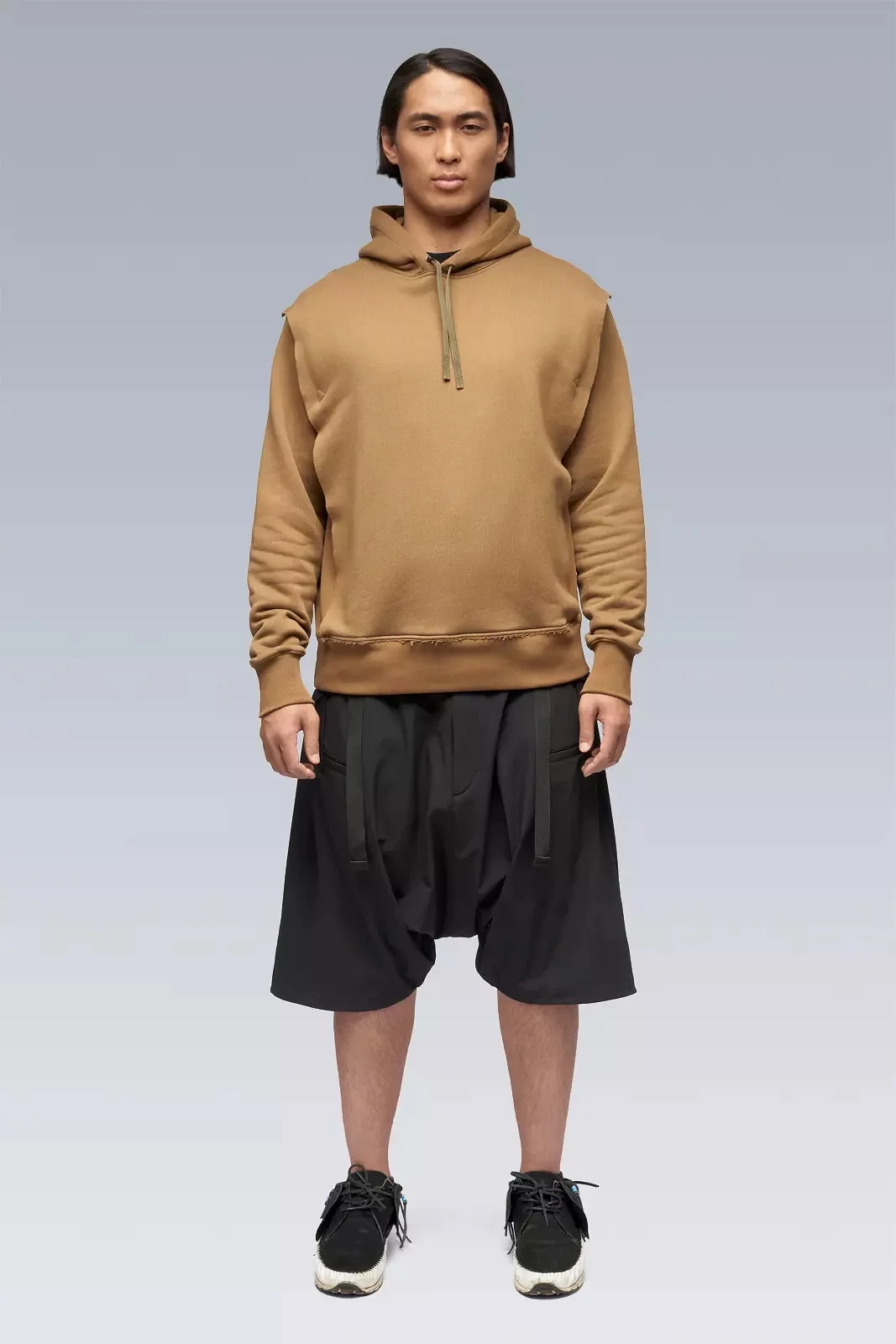 Cleaned up and stealthed out, S26-PR combines the familiar comfort of a pullover hoody with an additional layer of more than meets the eye functionality. The doubled-up construction veils a generously proportioned kangaroo pocket and a hidden 'delta- Λ' logo motif. Standard hoody drawstrings have been replaced with our proven rapid adjust tape (two layers of tape stitched together to form an 'x' cross section, allowing the tape to 'lock-in' when knotted, yet also remain easy to untie). Subtle embroidery details lets those who know know. [ Shown in size: M. Fits: STRAIGHT ] Fabric technology HEAVY ORGANIC JERSEY (100% CO) Made in Portugal Sizing Size XS S M L XL 1/2 Chest 54 57 60 63 66 Length 66 69 72 75 78 Shoulders 16 16.5 17 17.5 18 Sleeves 63 65 67 69 71 All measurements in centimeters. Weight: 880g (size M, color Black) Subsystems Pockets: 2 _External: 0 _Internal: 2 Actual product may differ from images.