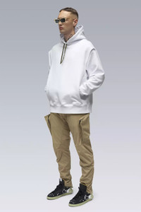 Cleaned up and stealthed out, S26-PR combines the familiar comfort of a pullover hoody with an additional layer of more than meets the eye functionality. The doubled-up construction veils a generously proportioned kangaroo pocket and a hidden 'delta- Λ' logo motif. Standard hoody drawstrings have been replaced with our proven rapid adjust tape (two layers of tape stitched together to form an 'x' cross section, allowing the tape to 'lock-in' when knotted, yet also remain easy to untie). Subtle embroidery details lets those who know know. [ Shown in size: M. Fits: STRAIGHT ] Fabric technology HEAVY ORGANIC JERSEY (100% CO) Made in Portugal Sizing Size XS S M L XL 1/2 Chest 54 57 60 63 66 Length 66 69 72 75 78 Shoulders 16 16.5 17 17.5 18 Sleeves 63 65 67 69 71 All measurements in centimeters. Weight: 880g (size M, color Black) Subsystems Pockets: 2 _External: 0 _Internal: 2 Actual product may differ from images.