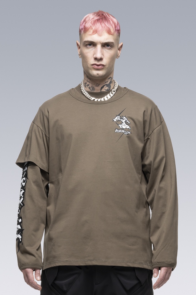 Custom fit organic cotton asymmetric long sleeve t-shirt with front, and right sleeve prints. [ Shown in size: M. Fits: STRAIGHT ] Fabric technology ORGANIC JERSEY (100% CO) Made in Portugal Sizing Size XS S M L XL 1/2 Chest 56 59 62 65 68 Length 69 72 75 78 81 Shoulders 19 19,5 20 20,5 21 Sleeves 55 57 59 61 63 All measurements in centimeters. Weight: 316g (size M, color Black) Actual product may differ from images.