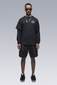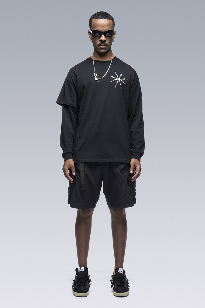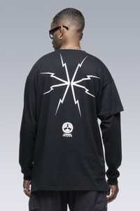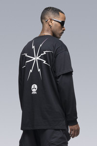 Custom fit pima cotton long sleeve t-shirt with asymmetric right side double sleeve. [ Shown in size: M. Fits: STRAIGHT ] Fabric technology 100% Pima CO Silk screen print with water-based ink Sizing Size XS S M L XL 1/2 Chest 54 57 60 63 66 Length 73 75 77 78 80 Shoulders 19.5 20 20.5 21 21.5 Sleeves 54.5 56.5 58.5 60.5 62.5 All measurements in centimeters. Weight: 240g (size M, color Black) Actual product may differ from images.