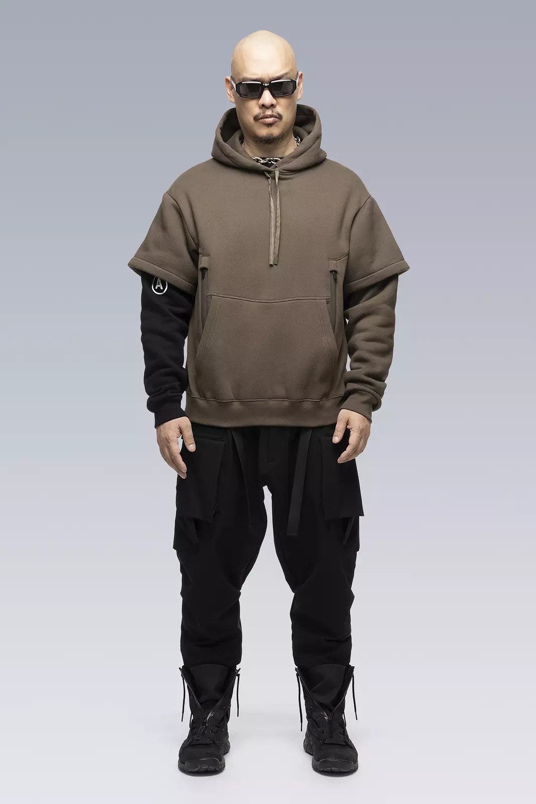 Custom fit cotton hooded sweatshirt with doubled sleeves and a partially hidden right sleeve print. Classic kangaroo pocket joined by dual holster position security pockets with size reverse coild zip closures. Standard hoody drawstrings have been replaced with our proven rapid adjust tape (two layers of tape stitched together to form an 'x' cross section, allowing the tape to 'lock-in' when knotted, yet also remain easy to untie [ Shown in size: M. Fits: STRAIGHT ] Fabric technology HEAVY JERSEY (100% CO) Made in Portugal Sizing Size XS S M L XL 1/2 Chest 61 64 67 70 73 Length 64 67 70 73 76 Shoulders 16 16.5 17 17.5 18 Sleeves 64 66 68 70 72 All measurements in centimeters. Weight: 990g (size M, color Black) Subsystems Pockets: 4 _External: 4 _Internal: 0 Actual product may differ from images.
