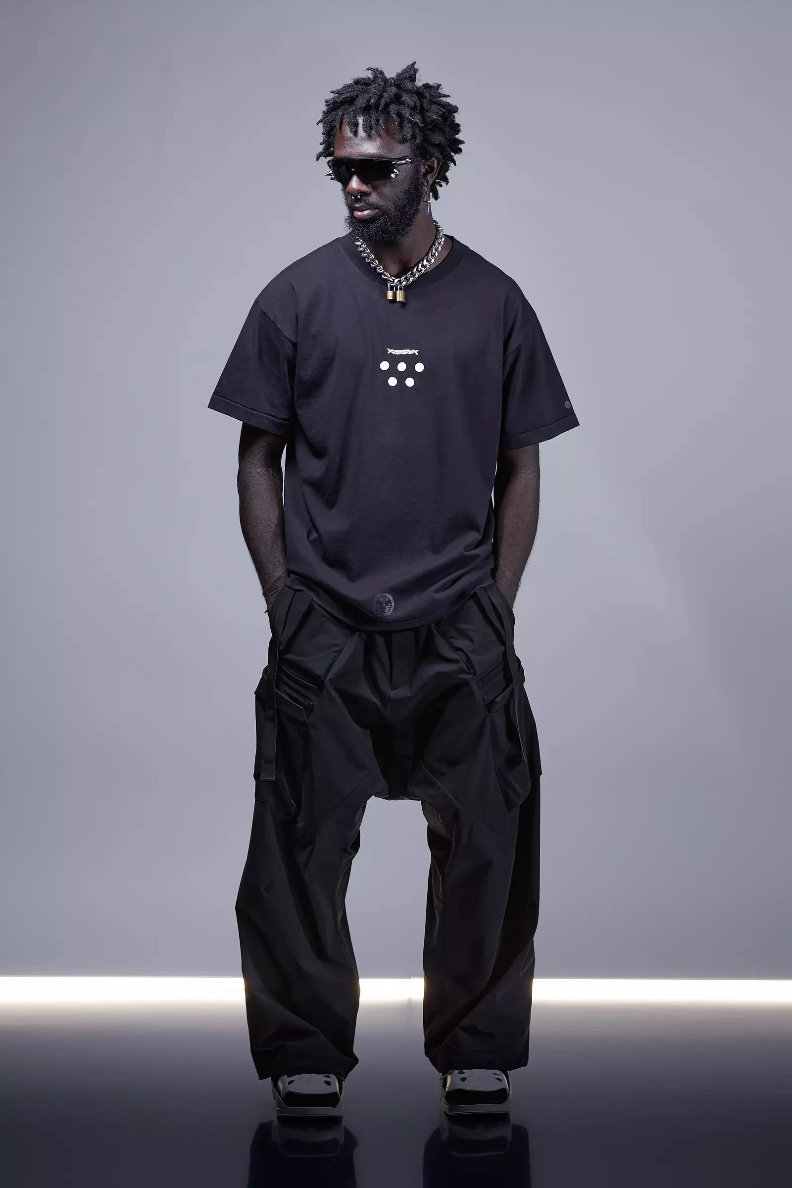 T-shirt made of 100% Cotton. Enzyme Washed. Markings in plastisol-based, dulled and gloss ink. Oven-cured and silk screened by hand in Los Angeles, California. Three screens. Markings are double screened with a flash process. With graphic and typographic design by Ian Wang and Raf Rennie. [ Shown in size: L. Fits: STRAIGHT ] Fabric technology 100% Cotton (7.1 oz/yd²) 18 single open ended cotton Enzyme washed Made in USA Sizing Size S M L XL XXL 1/2 Chest 48 52.5 56 62 70 Length 70 73 75 79 81 Shoulders 15 16 18 21 22 Sleeves 21 21.5 22 22.5 23 All measurements in centimeters. Weight: 220g (size M, color Black) Actual product may differ from images.