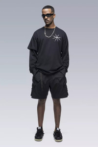 Designers all dream of uncovering the ultimate military cargo short. In a hard to reach part of the world, in an unknown shop, from an unknown supplier: a design unlike anything you have seen before. Even a glance hints at the superior logic behind them. Even without trying them on, you can sense the macro level forces and circumstances that had to exist to produce them. Not fashion, but the hum of research and performance, trial and error, prototype and production. And when you wear them, you know. All your searching has led you to this artefact of human ingenuity and when the team back home… Anyways, we never did find those shorts, so we made them ourselves. And we hope whoever unearths them decades from now will be as into them as we are today. SP29-M features: QLQRǽ 25 MM integrated web waistband with mil-spec webbing, removable release tab, and excess web retainer loop. Raid type BDU pocket layout with detached entry main cargo pockets with reverse coil zip closure, external phone pockets, internal phone sleeves, ǍCRŇMř signature web overflap back pockets, underlooped snap closure upper cargo pockets, and Deep Pocketsǽ for 14 pocket distributed content layout. Classic menswear zippered fly front. Demi-oversize fit block for zero resistance DFMA fit and wide spectrum body shape compatibility. Hard wearing, highly breathable, mil-spec stretch nylon fabrication. [ Shown in size: M. Fits: STRAIGHT ] Fabric technology NYLON STRETCH (98% PA, 2% EL) Water repellent, breathable Fabric made in USA Military specification Sizing Size XS S M L XL 1/2 Waist 42 44 46 48 50 1/2 Hem 30 30.5 31 31.5 32 Inseams 17 20 23 26 29 Outseam 48 51 54 57 60 All measurements in centimeters. Weight: 370g (size M, including removable parts) Subsystems Deep Pocketsǽ QLQRǽ Web Waistband _25 MM mil-spec webbing _Release Tab [ Removable ] _Web retainer loop Pockets: 14 _External: 10 _Internal: 4 Actual product may differ from images.