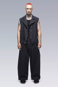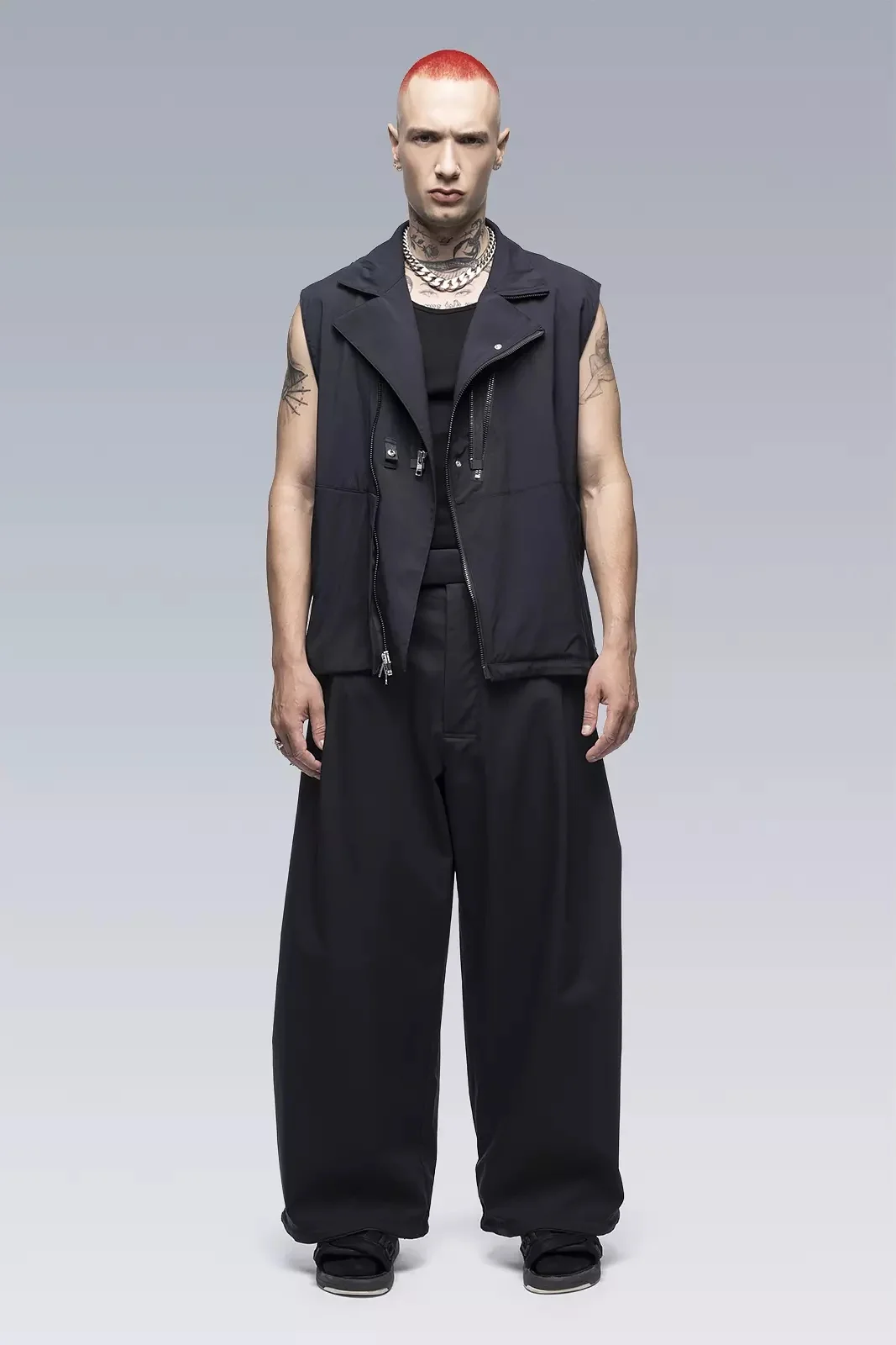 The well loved 68 biker jacket block rendered as a lightweight sleeveless vest in military specification nylon. [ Shown in size: M. Fits: PROFILE ] Fabric technology NYLON STRETCH (98% PA, 2% EL) Water repellent, breathable Fabric made in USA Military specification Sizing Size XS S M L XL 1/2 Chest 54.5 57.5 60.5 63.5 66.5 Length 53 56 59 62 65 Shoulders 14 14,5 15 15,5 16 All measurments in centimeters. Weight: 480g (size M, color: Black, including removable parts) Systems ACRONYM SOUNDǽ (PAT.) Subsystems ForceLockǽ [ Removable ] JacketSlingǽ [ Removable ] Logo tape [ Removable ] SpeedLockǽ Pockets: 3 _External: 3 _Internal: 0 Includes JacketSlingǽ [ Removable ] Actual product may differ from images.