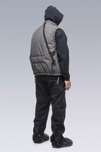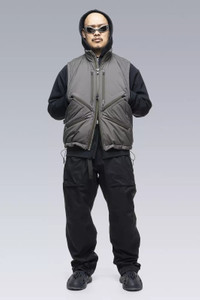 Modular, lightweight, exceedingly comfortable and cut to fit over a broad section of layers and body shapes, V91 is J91 in vest form. The outstanding properties of PrimaLoft® insulation and WINDSTOPPER® shell make it formidable as both a component piece* or a jacket on its own. Category defining modular insulation and lots of zippers. PrimaLoft® insulation is designed to regulate comfort levels during intense activity while offering uncompromising performance in all conditions. Combined with 2 layer Gore Windstopper®, the results are incredibly soft, warm, light, and protective. Effortless and effective. *Specifically designed to layer underneath WIDE fit shells, but can compress down to be worn under STRAIGHT fit shells. Can also be worn over top of PROFILE fit items. [ Shown in size: M. Fits: WIDE ] Fabric technology 2L GORE WINDSTOPPER® shell fabric (78% PES, 22% ePTFE) PRIMALOFT® BLACK RISE insulation (170g/m²) (100% PES) Sizing Size XS S M L XL 1/2 Chest 60 63 66 69 72 Length 70,5 73,5 76,5 79,5 82,5 Shoulders 14 14,5 15 15,5 16 All measurments in centimeters. Weight: 660g (size M, color: Black, including removable parts) Subsystems JacketSlingǽ AuxZipǽ ( M ) Pockets: 8 _External: 6 _Internal: 2 Includes JacketSlingǽ [ Removable ] Interface with All ACRONYM AuxZipǽ ( M ) units Actual product may differ from images.