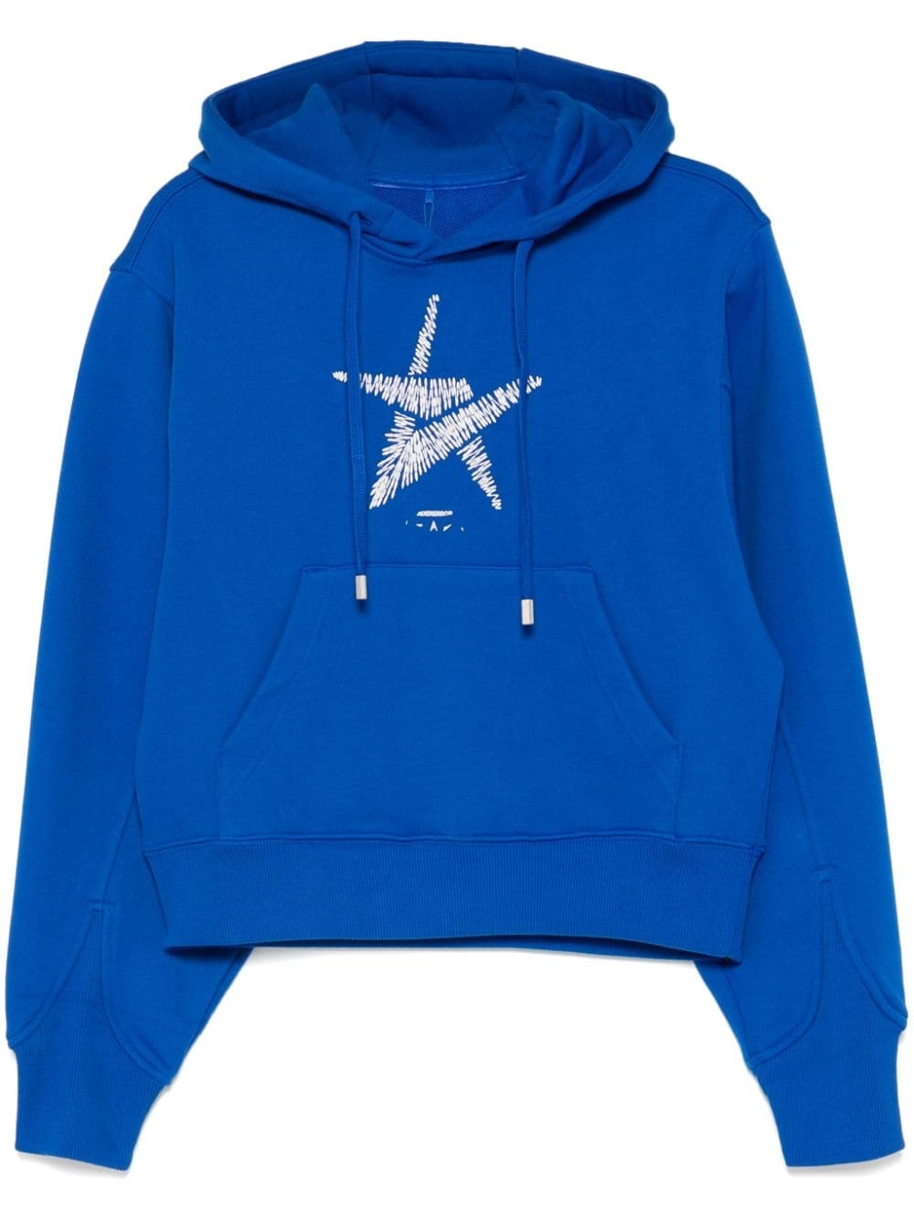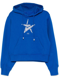 graphic embroidery hoodie Highlights - Blue/white - Cotton - Silver-tone hardware - Slouchy drawstring hood - Graphic embroidery to the front - Front pouch pocket - Decorative button detailing - Drop shoulder - Tuck detailing - Long sleeves - Ribbed cuffs and hem - Semi-cropped - When buying this unisex item, keep in mind that it is graded in standard men's sizing. Imported Composition Cotton 100%