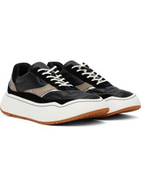 Low-top quilted buffed leather and suede sneakers in black. · Square toe · Lace-up closure · Padded tongue and collar · Logo graphic embroidered at outer side · Mesh lining · Logo embossed at rubber midsole · Treaded rubber sole Supplier color: Black Upper: leather. Sole: rubber. Made in South Korea 251039M237001