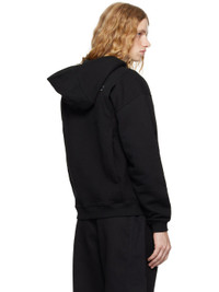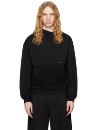 French terry hoodie. · Offset button placket at hood · Logo patch at front · Reverse French terry kangaroo pocket · Rib-knit hem and cuffs · Dropped shoulders · Twin pleats at back · Button-style logo appliques at back · Logo-engraved gunmetal-tone hardware Supplier color: Noir Body: 100% cotton. Trim: 96% cotton, 4% elastane. Made in South Korea 242039M202004
