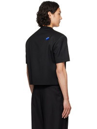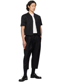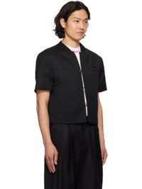 Wool twill overshirt. · Notched collar · Hook-eye closure · Ripped detailing at chest · Welt pockets · Padded shoulders · Frayed flag with topstitching at back · Welt pocket at interior · Full logo-woven satin lining Supplier color: Black Body: 100% wool. Lining: 55% polyester, 45% rayon. Made in South Korea 251039M192025