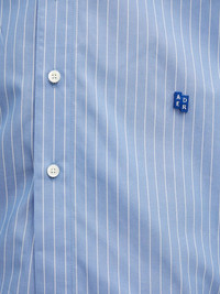 striped short-sleeve shirt Highlights - Light blue - Stripe pattern - Short sleeves - Button fastening - Chest pocket - Embroidered logo Imported Composition Cotton 100% Washing instructions Read Manufacturer Guidelines
