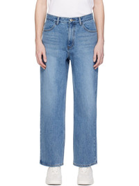 Oversized non-stretch denim jeans. Fading and whiskering throughout. · Straight-leg · Belt loops · Four-pocket styling · Zip fly · Logo topstitching at outseams · Leather logo patch at back waistband · Logo flag with topstitching at back · Contrast stitching in tan Part of the Significant collection. Supplier color: Sky blue 100% cotton. Made in South Korea 251039M186008