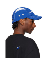 Paneled nylon taffeta cap in blue and white. · Pinched seams at crown · Curved brim · Metal eyelets at sides · Logo flag at back face · Press-release cinch fastening · Poplin lining · Contrast stitching in white Supplier color: Blue Body: 100% nylon. Lining: 80% polyester, 20% cotton. Made in South Korea 241039M139015