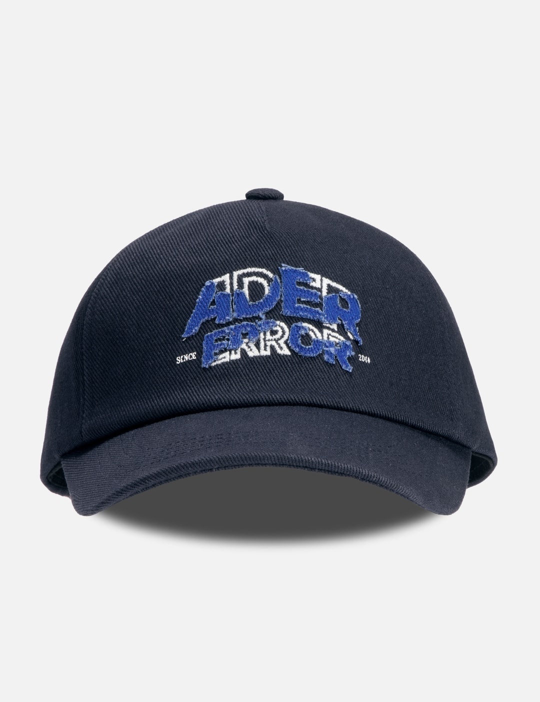 - Ader Error - Logo Appliqué Cap - Six-panel construction - Cotton twill outer - Adjustable rear strap - Embroidered logo appliqué with distressed details - Curved brim - Fully lined - Color: Navy - Material: Shell: 100% Cotton; Lining: 80% Polyester, 20% Cotton - See more Caps, Hats and Accessories SIZING Approximate dimensions: - Size S - Brim Width: 8cm - Crown Height: 12cm - Circumference: 58cm - Size M - Brim Width: 8cm - Crown Height: 12cm - Circumference: 60cm