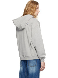 French terry hoodie. · Offset button placket at hood · Logo patch at front · Reverse French terry kangaroo pocket · Rib-knit hem and cuffs · Dropped shoulders · Twin pleats at back · Button-style logo appliques at back · Logo-engraved gunmetal-tone hardware Supplier color: Grey