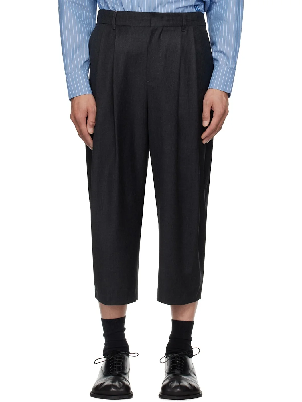 Oversized wool twill trousers. · Low-rise · Belt loops · Four-pocket styling · Zip-fly · Pleats at front waistband · Darts at back waistband · Topstitched logo at back Part of the Significant collection. Supplier color: Grey 100% wool. Made in South Korea 251039M191003