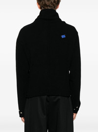 high-neck cardigan Highlights - Black - Ribbed knit - Brushed effect - High neck - Front button fastening - Long sleeves - Decorative button detailing - Raised seam detail - Brooch detail - Unlined - Rolled hem - When buying this unisex item, keep in mind that it is graded in standard men's sizing. Imported Composition Mohair 45%, Nylon 40%, Polyester 15% SIZE & FIT Model measurements Height 5 ft 10 in(1.78 m) Bust/Chest 33.85 in(86 cm) Hips 36.61 in(93 cm) Waist 26.77 in(68 cm) Measurement CHEST 43.3 in(110 cm) SLEEVE LENGTH 24.01 in(61 cm) LENGTH 24.4 in(62 cm) Shoulder Width 23.22 in(59 cm) FittingInformation This piece is unisex – expect a slim fit if you usually select men's sizing; expect a looser fit if you usually select women's sizes Made with a midweight knit, this piece offers some stretch
