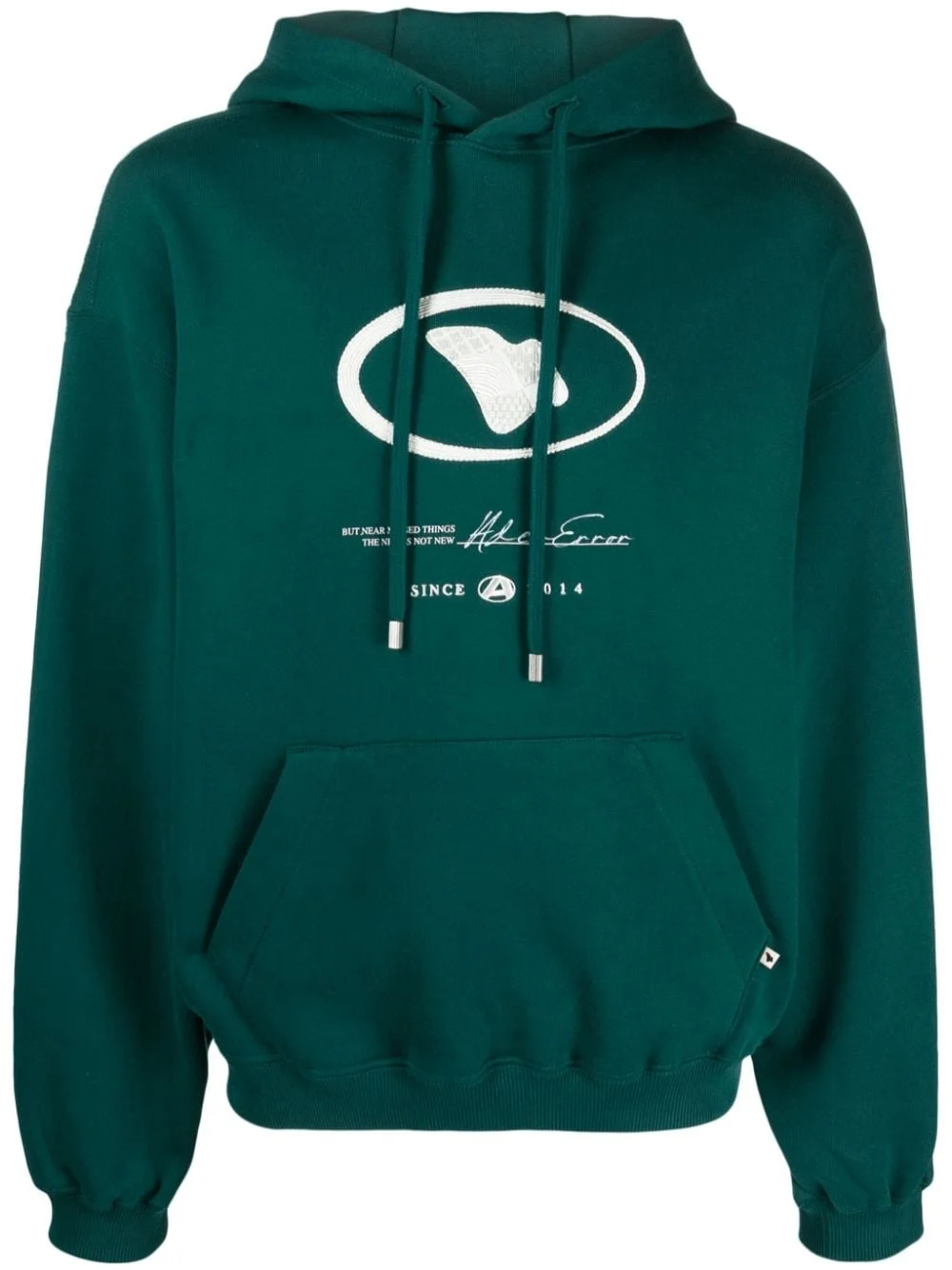 logo-print cotton hoodie Highlights - Dark green - Cotton - Logo print at the chest - Drawstring hood - Long sleeves - Straight hem Imported Composition Cotton 100% SIZE & FIT Model measurements Height 6 ft 2 in(1.87 m) Bust/Chest 37 in(94 cm) Hips 33.85 in(86 cm) Waist 27.95 in(71 cm) FittingInformation Designed to be unstructured, offering a loose fit throughout The ribbed hem offers a close, comfortable fit Made from a midweight non-stretch fabric, this piece offers minimal elasticity when worn This piece fits true to size – take your usual size Washing instructions Hand Wash