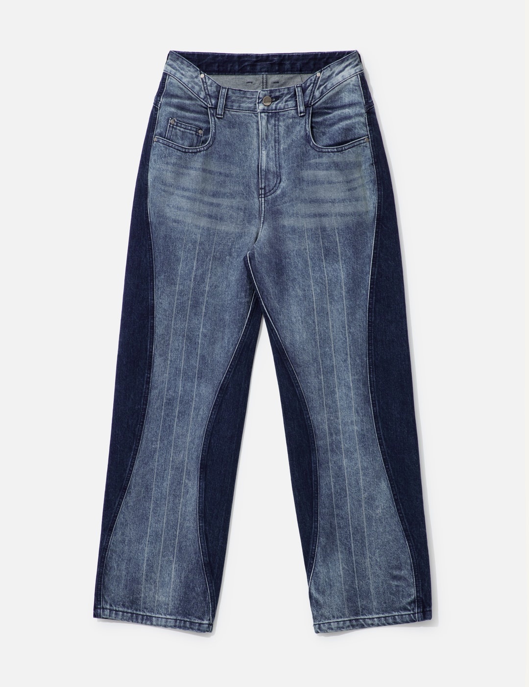 - Ader Error - Mix Panel Jeans - Two-tone cotton denim fabric - Higher rear waist - Zip fly - 5-pocket style - Straight leg - Color: Blue - Material: 100% Cotton - See more Jeans and Clothing SIZING Men - Model wears size M - Model measures: Height 186cm, Chest 34”/86cm, Waist 28”/71cm, Hip 36”/91cm - Model wears size S - Model measures: Height 177cm, Chest 31.9’’/81cm, Waist 23.6’’/60cm, Hip 35.8’’/91cm