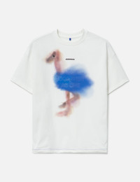 - Ader Error - Ostrich Semi-oversized Fit T-shirt - Semi-oversized fit - Crewneck - Short sleeves - Flocked graphic print on front - Button decoration - Straight hem - Made in Korea - Color: Off White - Material: 73% Cotton, 27% Polyester - See more T-Shirts and Clothing SIZING Men - Model wears size M - Model measures: Height 186cm, Chest 34”/86cm, Waist 28”/71cm, Hip 36”/91cm - Model wears size S - Model measures: Height 177cm, Chest 31.9’’/81cm, Waist 23.6’’/60cm, Hip 35.8’’/91cm