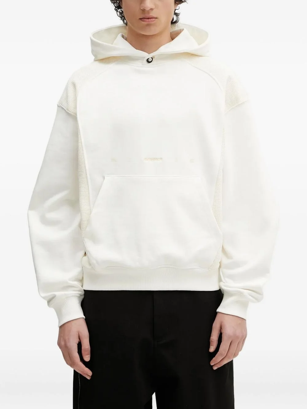 panelled-fabric hoodie Highlights - Ivory - Hooded neckline - Mixed-fabric panelling - Kangaroo pocket - Dropped shoulders - Long sleeves - Fringed label and embroidery at the back Imported Composition Outer: Cotton 100% Lining: Cotton 52%, Polyester 48% Washing instructions Read Manufacturer Guidelines