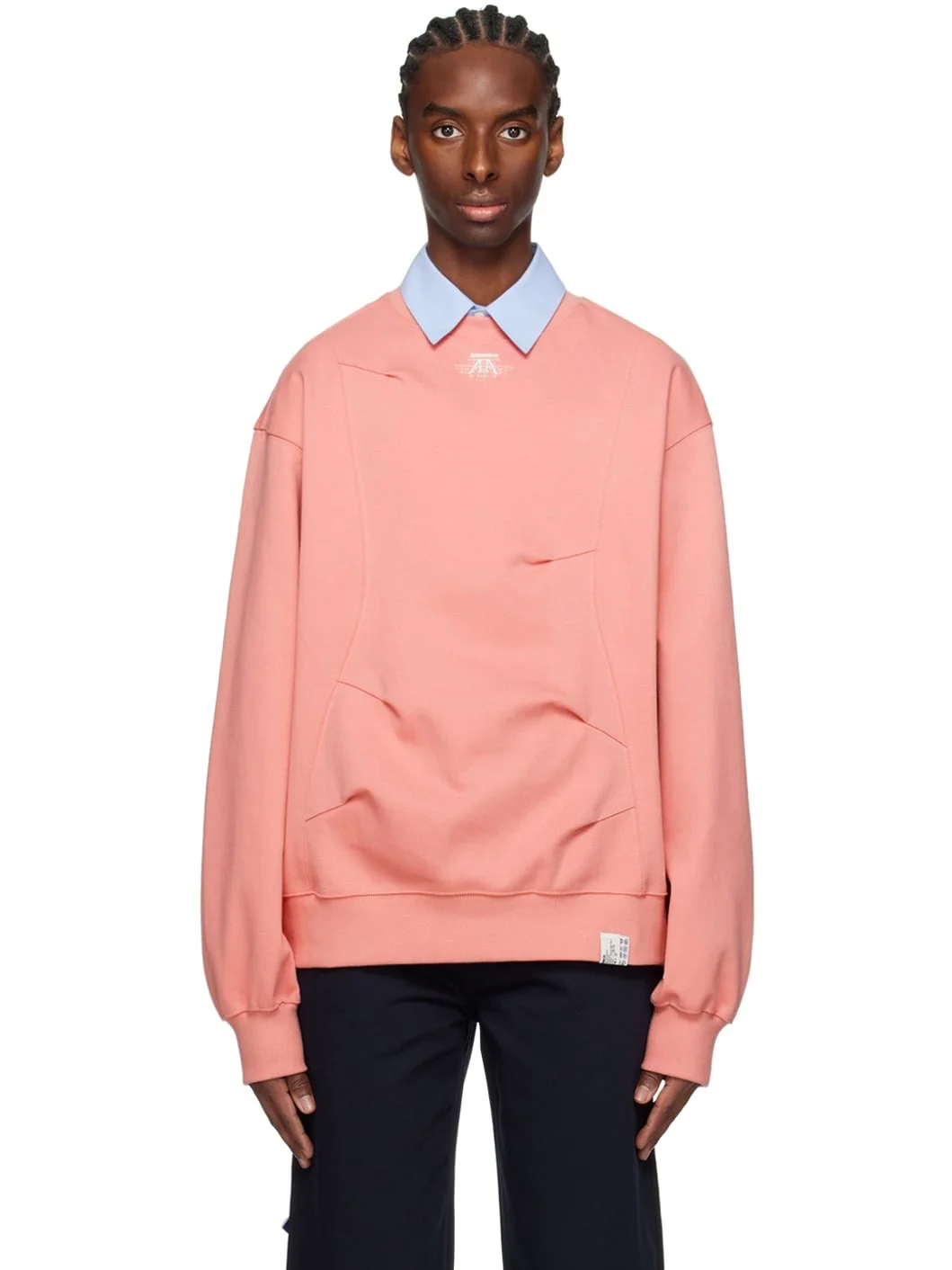 Cotton- and polyester-blend jersey sweatshirt. · Rib knit crewneck, hem, and cuffs · Logo embroidered and printed at chest · Darts at front · Dropped shoulders · Logo patches at front hem and back · Pleat and logo flag at back Supplier color: Pink Body: 74% cotton, 26% polyester. Trim: 96% cotton, 4% elastane. Made in South Korea 241039M204011