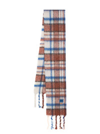 plaid logo-patch scarf Highlights - Ivory white/cerulean blue/multicolour - Knitted construction - Brushed effect - Plaid check pattern - Logo patch to the front - Fringed edge - Rectangle shape - Wraparound style Imported Composition Alpaca 28%, Mohair 28%, Wool Felt 24%, Nylon 20% SIZE & FIT Measurement LENGTH 90.55 in(230 cm) Washing instructions Machine Wash