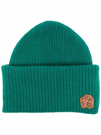 ribbed knit beanie green wool blend ribbed knit logo patch to the front turn-up brim Imported Composition Wool 52%, Nylon 23%, Acrylic 13%, Yak 8%, Spandex/Elastane 4%