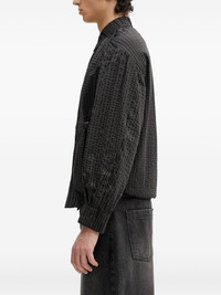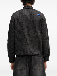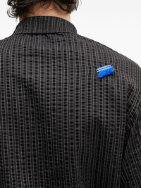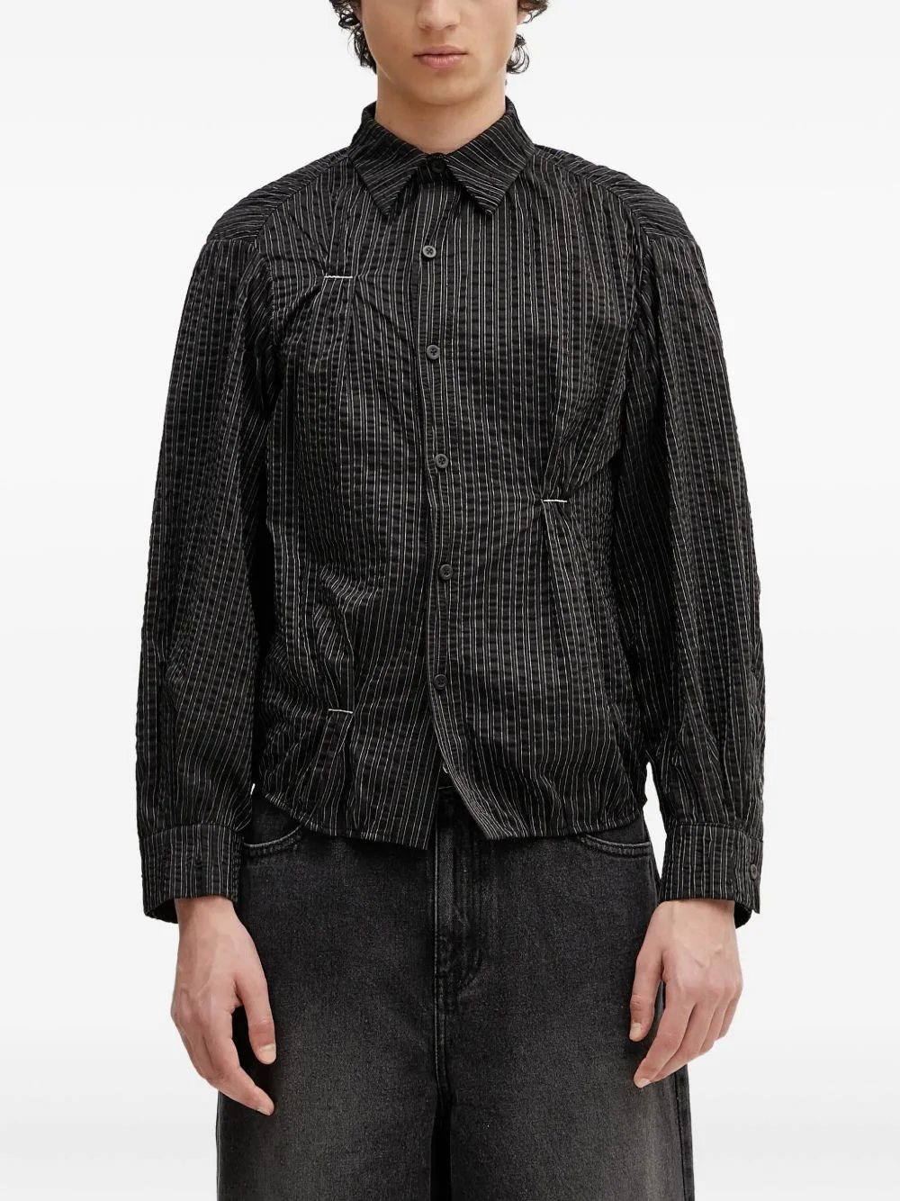 striped-pattern gathered shirt Highlights - Black - Striped pattern - Gathered detailing - Long sleeves - Button fastening - Spread collar - Fringed label and embroidery at the back Imported Composition Nylon 54%, Cotton 38%, Polyester 5%, Elastane 3% Washing instructions Read Manufacturer Guidelines