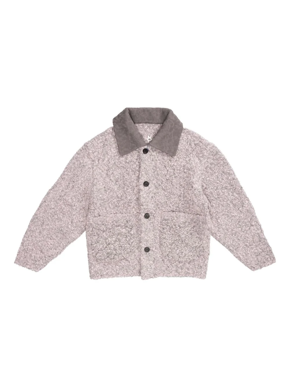 textured-collar elbow-patch cardigan Highlights - Light purple - Textured panel - Front button fastening - Classic collar - Elbow patches Imported Composition Wool 75%, Nylon 25% Washing instructions Read Manufacturer Guidelines