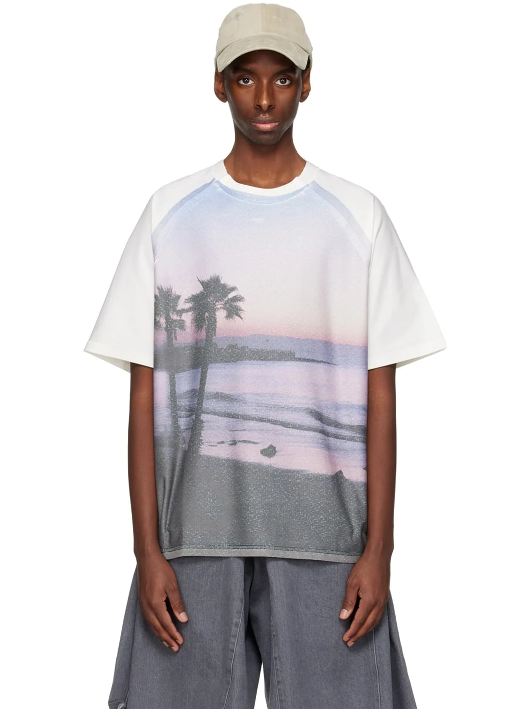 Cotton- and polyester-blend jersey T-shirt. Inverted seams and overlock stitching throughout. · Crewneck · Graphic and logo printed at front · Raglan sleeves · Logo flag at back Supplier color: Purple Body: 64% cotton, 36% polyester. Trim: 64% cotton, 36% polyester. Made in South Korea 241039M213024